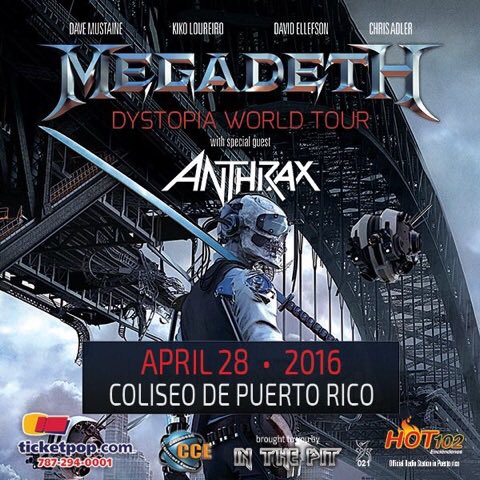 About: RT @ChrisAdlerMusic: @Megadeth On the way right now to rock #PuertoRico! #DystopiaWorldTour w/@Anthrax http://bit.ly/1SPNYYn Find more great photos online now in our social feeds. View the original post on Twitter at @ukMegadeth